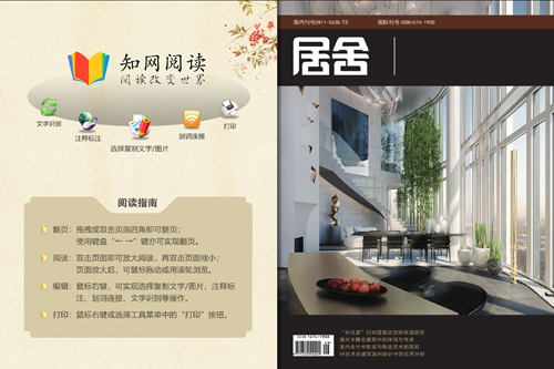 《居舍》是经国家新闻出版总局批准备案的建筑装饰科技综合类专业学术期刊。主要栏目:产业观察、装饰装修、材料应用、水电暖通、建筑设计、建筑文化、施工技术、园林绿化、工程管理、案例分析、研究探讨等。本刊系中国核心期刊(遴选)数据库、中国期刊全文数据库等收录期刊,中国知网(CNKI)数据库全文收录期刊,在本刊发表的论文可在职称评定、职务晋升、业绩考核及岗位竞聘中起到重要科研认定作用。