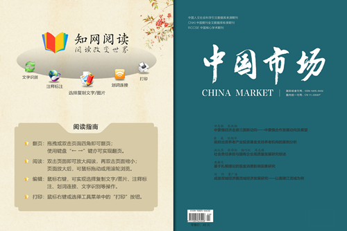 《中国市场》是经国家新闻出版广电总局批准备案的国家级市场经济综合类专业学术理论期刊(RCCSE中国核心学术期刊)。主要栏目:智库前沿、理论研究、区域发展、经济学人、能源战略、史海回眸、智库名录等。本刊系中国人文社会科学引文数据库来源期刊、中国核心(遴选)期刊数据库、中国期刊全文数据库(CJFD)等收录期刊,中国知网(CNKI)数据库全文收录期刊。在本刊发表的论文可在职称评定、晋升考核以及岗位竞聘中起到重要科研认定作用。